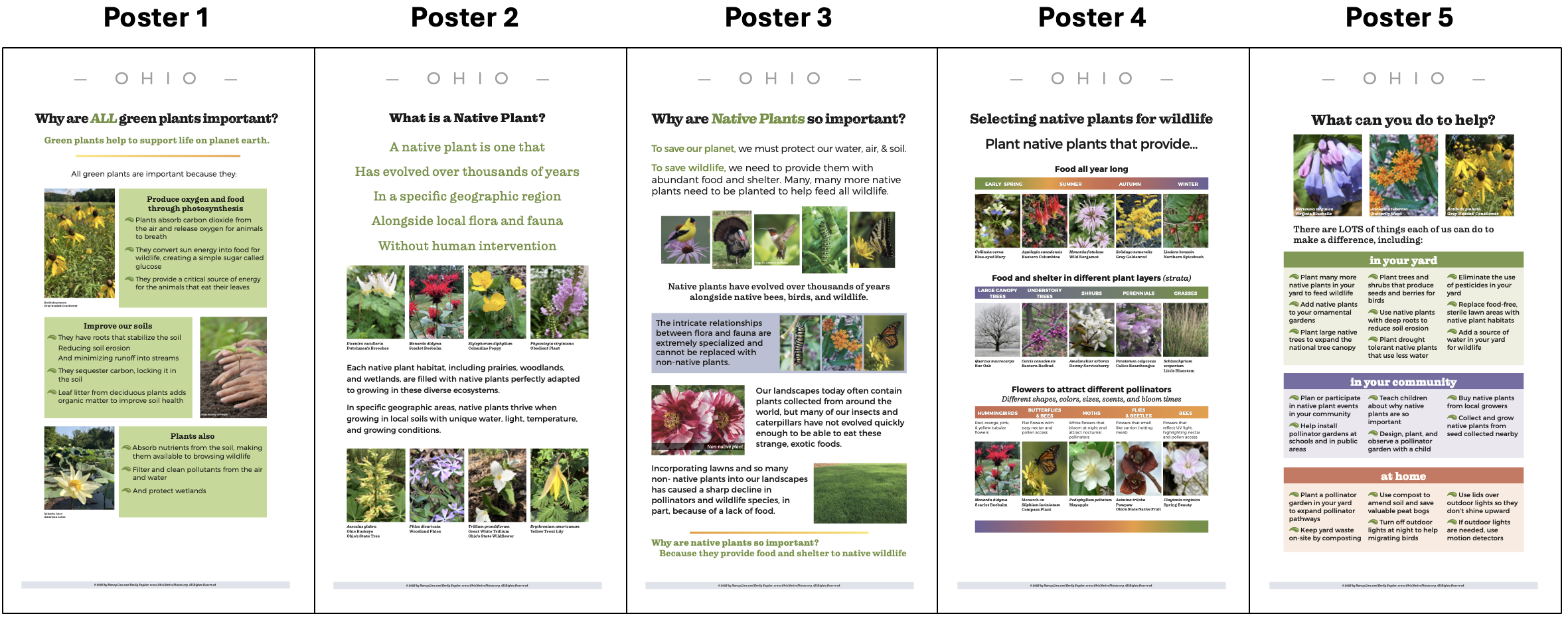 We have created a set of 5 posters that describe why native plants are so important to our fragile ecosystems. Posters for Ohio and Virginia (with pictures of native plants unique to those states) have been completed. The posters for Indiana, Mississippi, and Texas will be available soon!